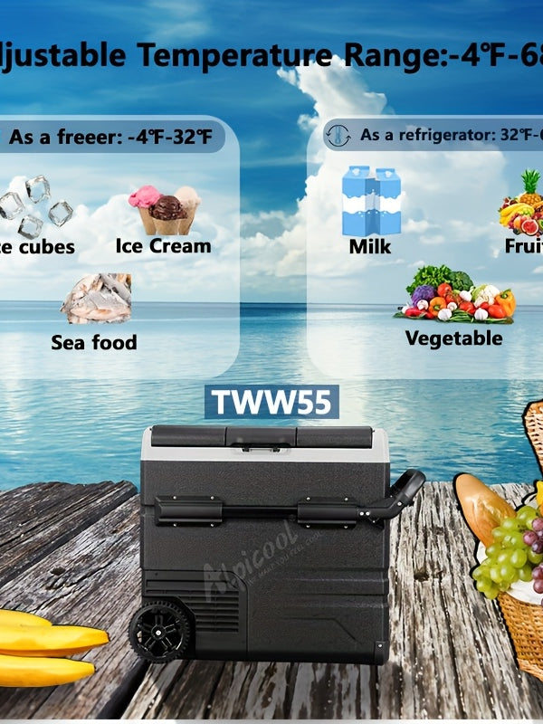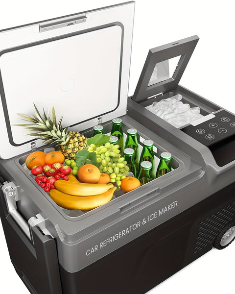 Car-mounted refrigerator, compact and portable, suitable for both the vehicle and home use. It can quickly cool or heat up. It helps you lock in freshness anytime and anywhere, allowing you to enjoy refreshing drinks and warm meals. This makes your travel life more comfortable.