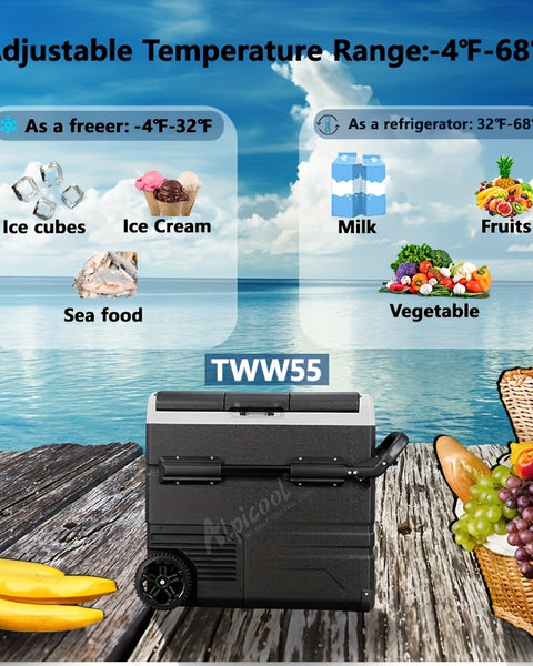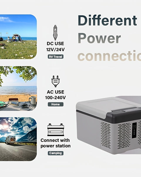 Car-mounted refrigerator, compact and portable, suitable for both the vehicle and home use. It can quickly cool or heat up. It helps you lock in freshness anytime and anywhere, allowing you to enjoy refreshing drinks and warm meals. This makes your travel life more comfortable.
