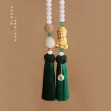 Handmade Artificial Jade-like White Bodhi Wood-like Car Pendant - Buddhist Guanyin\u002FBuddha Statue with Prayer Beads-like Tassel, Feng Shui Spiritual Amulet for Good Luck & Peace, Vehicle Ornament for, Trucks, Buses (Authentic