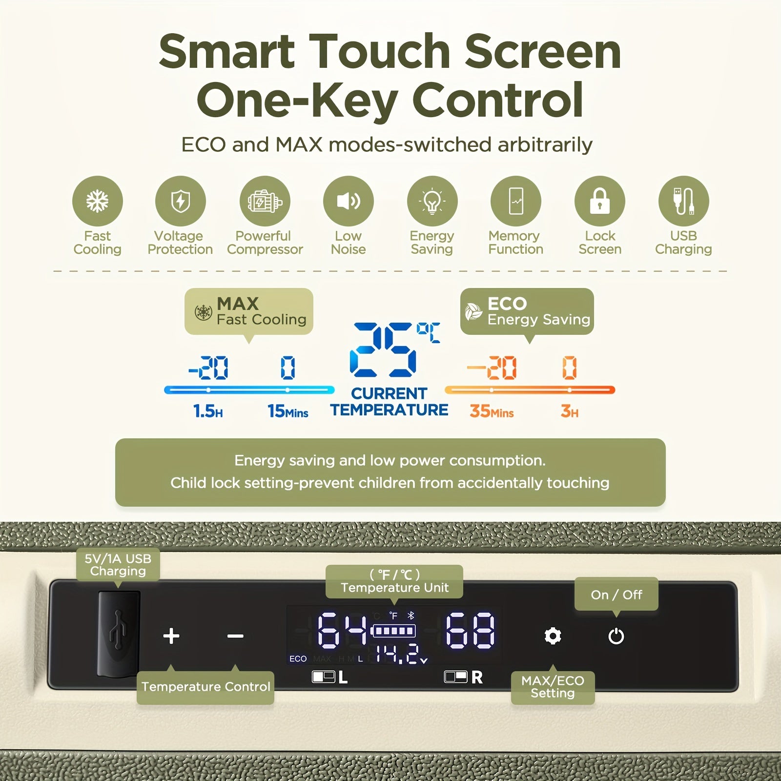 APP Control Car Fridge 12V Portable RV Refrigerator with Freezer | APP Control, -4-46F Compressor Cooler for Camper, Truck, Van, Off-Grid Travel