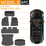 5D Car Mat (6pcs Set), Material: TPE, Including: Floor Mats+front Compartment+rear Compartment+trunk Mat, Model: for Tesla Model 3 2021-2024