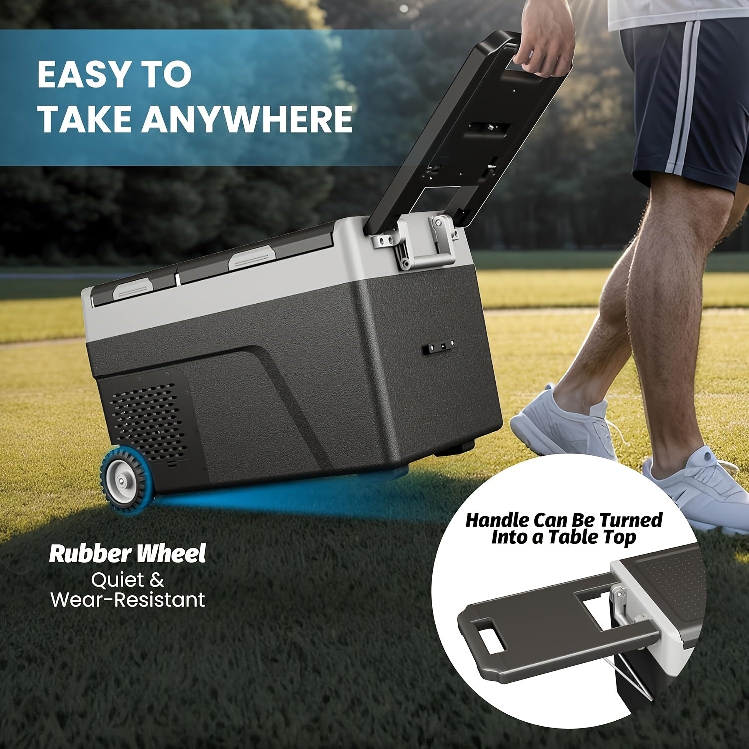 51 QT (48L) Portable Car Electric Cooler, 12V Refrigerator Fridge Freezer For Car, Dual Zone, -4F-68F, Wheels, AC\u002FDC Charger For Camping, Picnic, Travel, Road Trip, Black