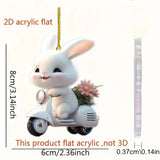 Easter Bunny Hanging Ornaments Cute Rabbit Riding An Electric Bike Car Rearview Mirror Charms Interior Decorations