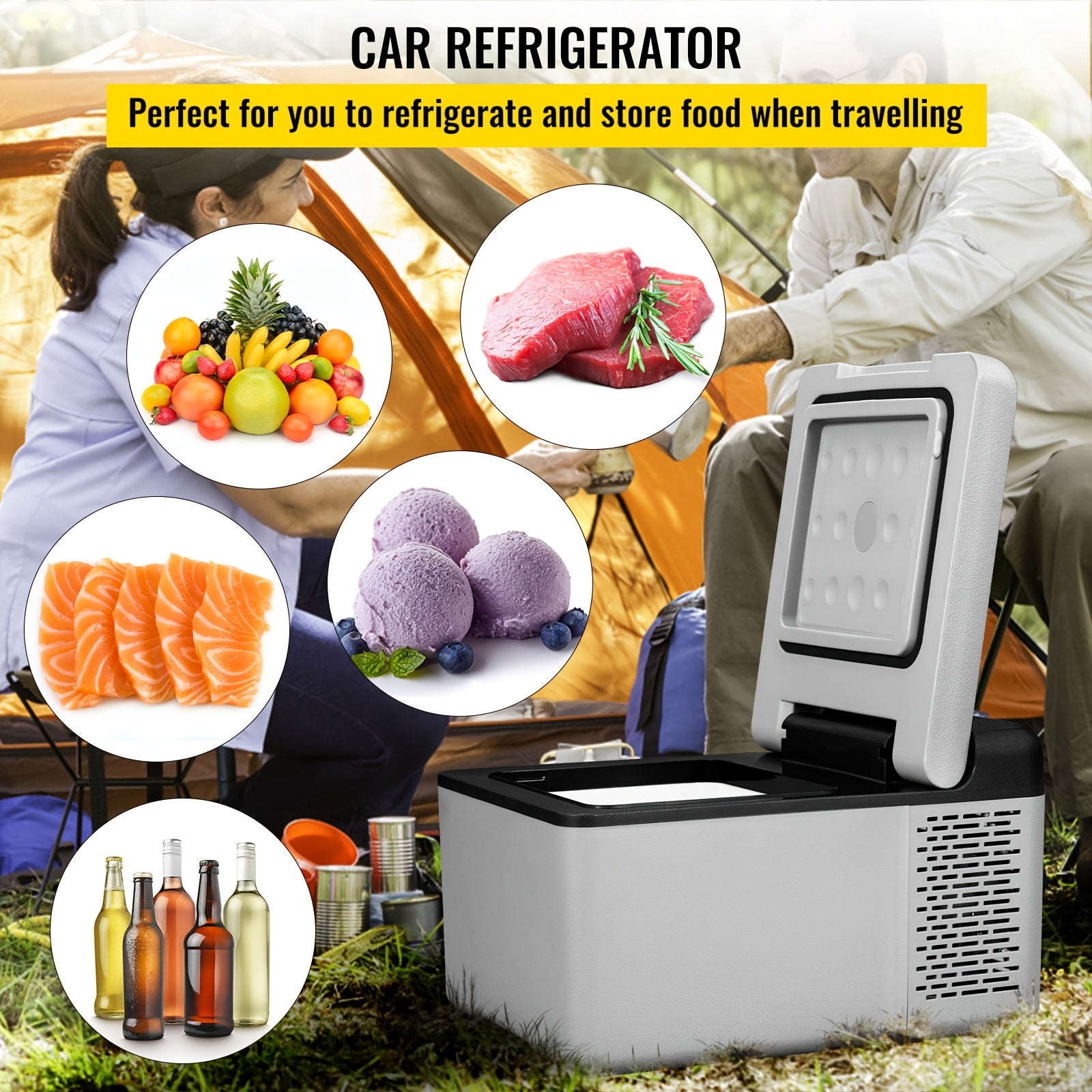 Portable Car Fridge Happybuy Portable 12V Refrigerator 10 Qt | Mini Freezer, Car Compressor Fridge Cooler for Camping, Road Trip, Travel, Outdoor - 12V\u002F24V DC