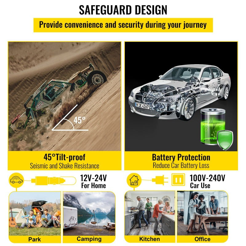 VEVOR 12\u002F24V DC & 110-240V AC Powered 16 Qt Portable Car Refrigerator with App Control & Digital Display, 4°F to 68°F Cooling Range, Compact Mini Fridge with 2-Door Design & Semiconductor Compressor for Truck, RV, Boat, Home, Outdoor Use - Energy-Ef